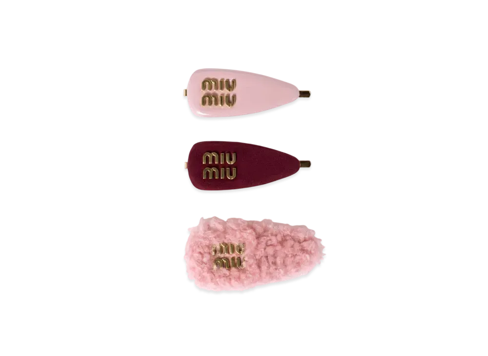 MIUMIU Set Of Leather Suede and Shearling Hair Clips "Pink"