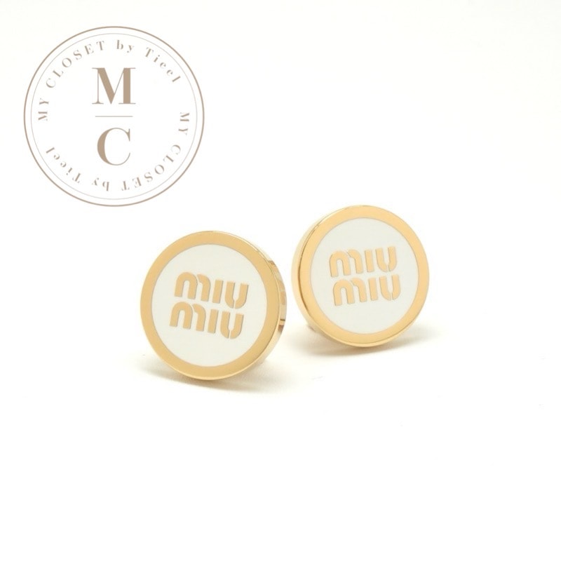 ミュウミュウ MIUMIU ピアス イヤリング ゴールド ホワイト ロゴ