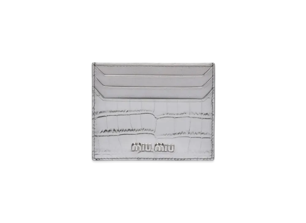 MIU MIU Crocodile Printed Leather Card Case "Silver"