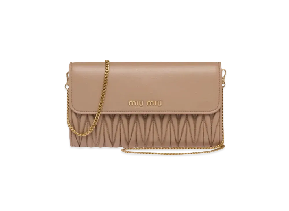 Meteerassenapa Leather Wallet With MIU MIU Shoulder Strap "Beige Pink"