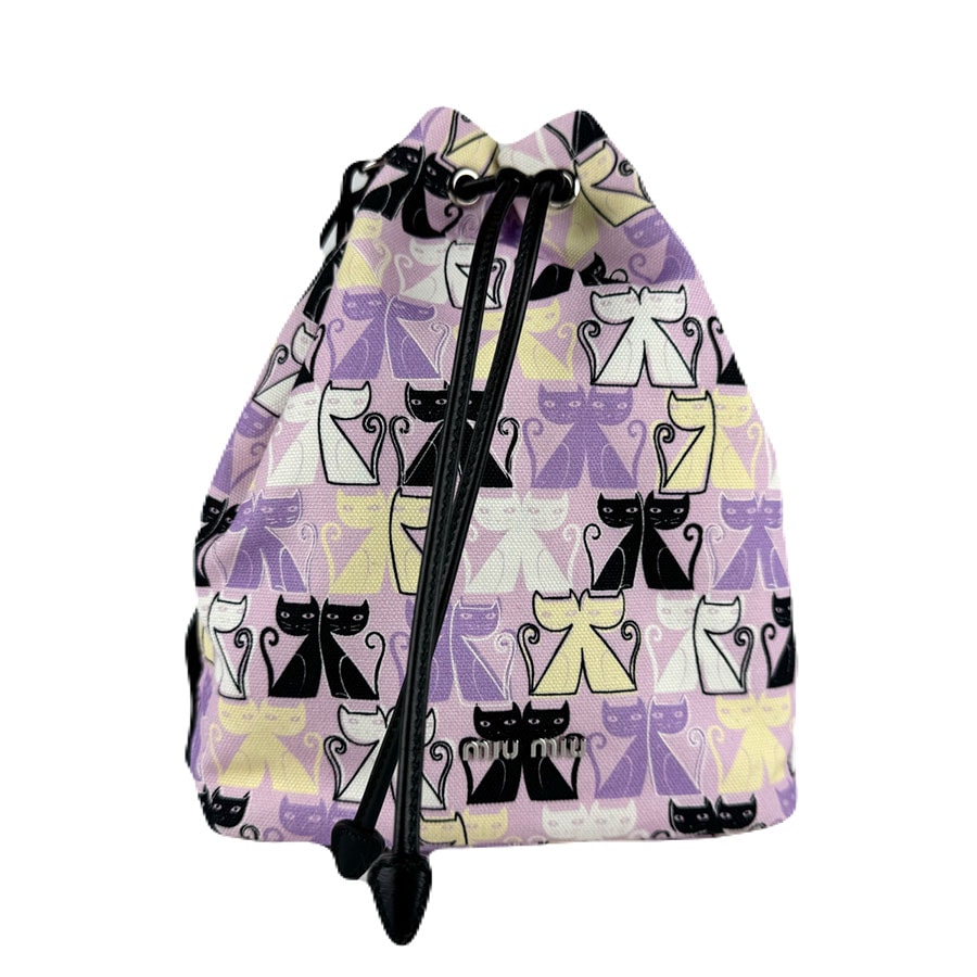ミュウミュウ MIUMIU ポーチ 巾着ポーチ キャンバス パープル系マルチカラー レディース【中古】 z8027