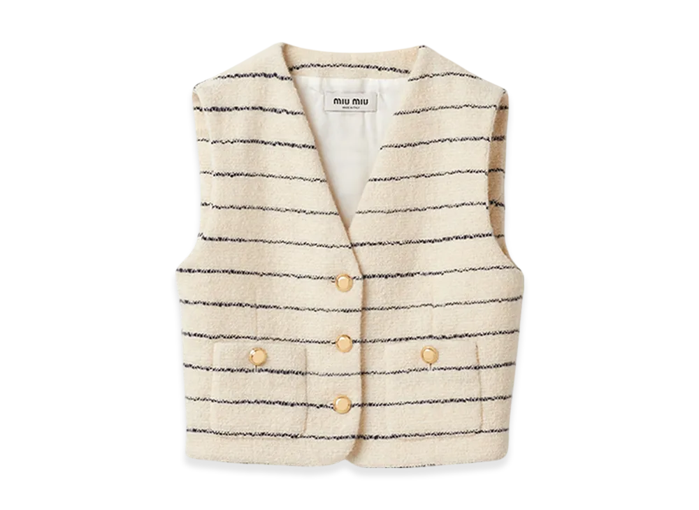 MIU MIU Women's Single Breasted Boucle Vest "Ivory/Blue"