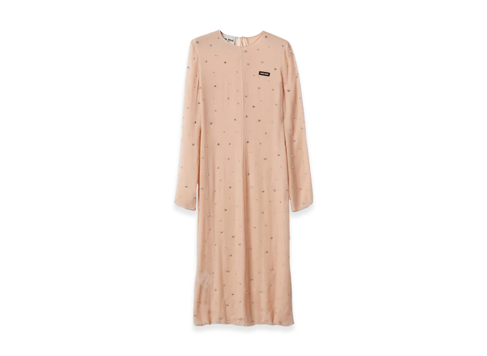 MIU MIU Women's Embroidered Chiffon Dress "Peach"