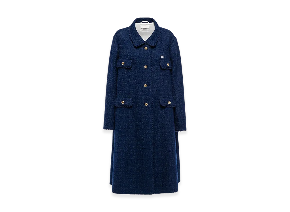 MIU MIU Women's Single Breasted Tweed Coat "Blue"