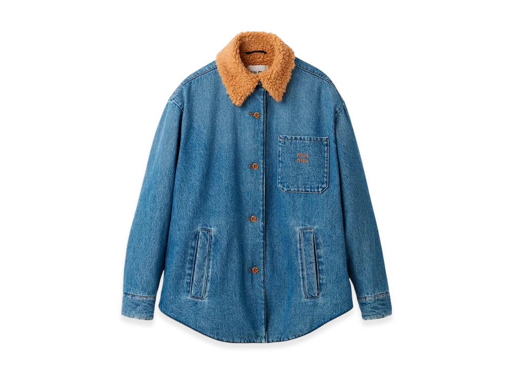 MIU MIU Women's Embroidered Denim Blouson Jacket "Sapphire Blue"