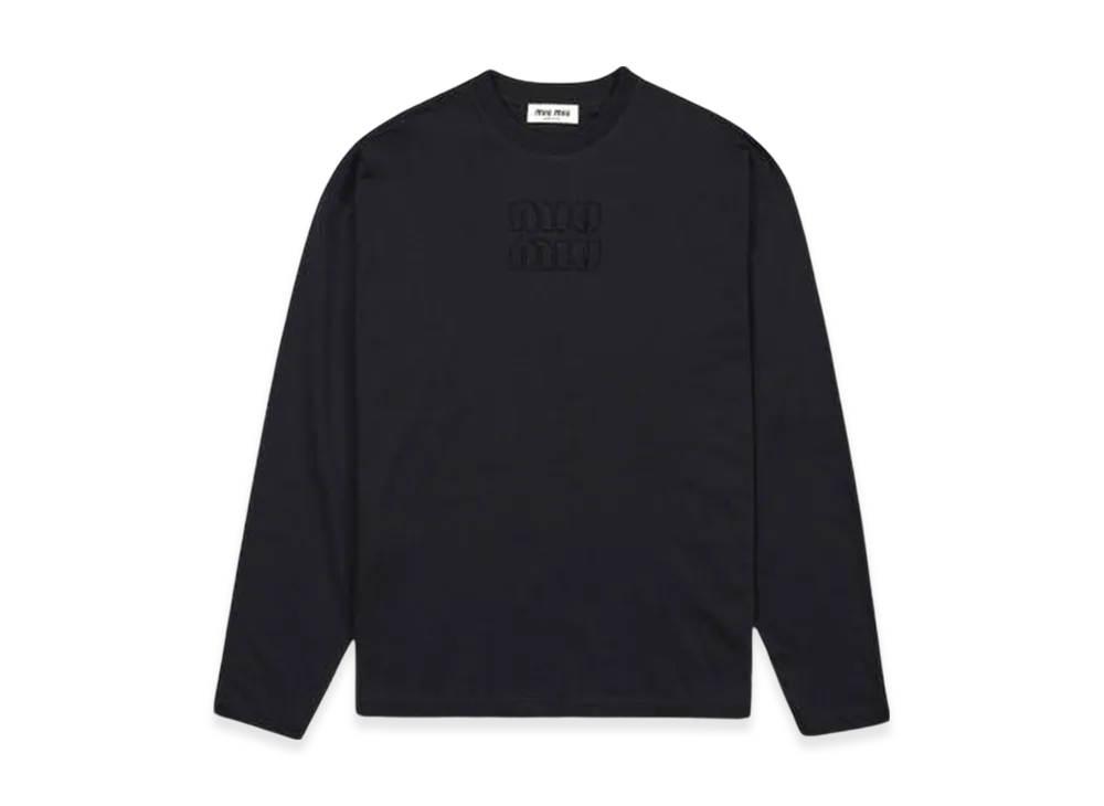 MIU MIU Women's Long Sleeve Cotton T-Shirt with Embroidered Logo "Blue"