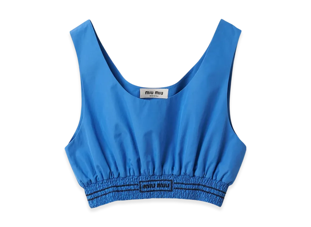 MIU MIU Women's Embroidered Poplin Top "Periwinkle Blue"