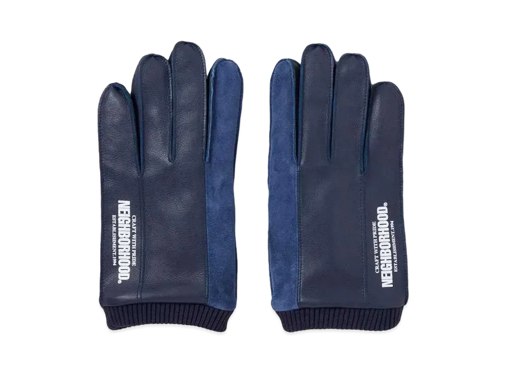 NEIGHBORHOOD Leather Panel Glove . CP "Navy"