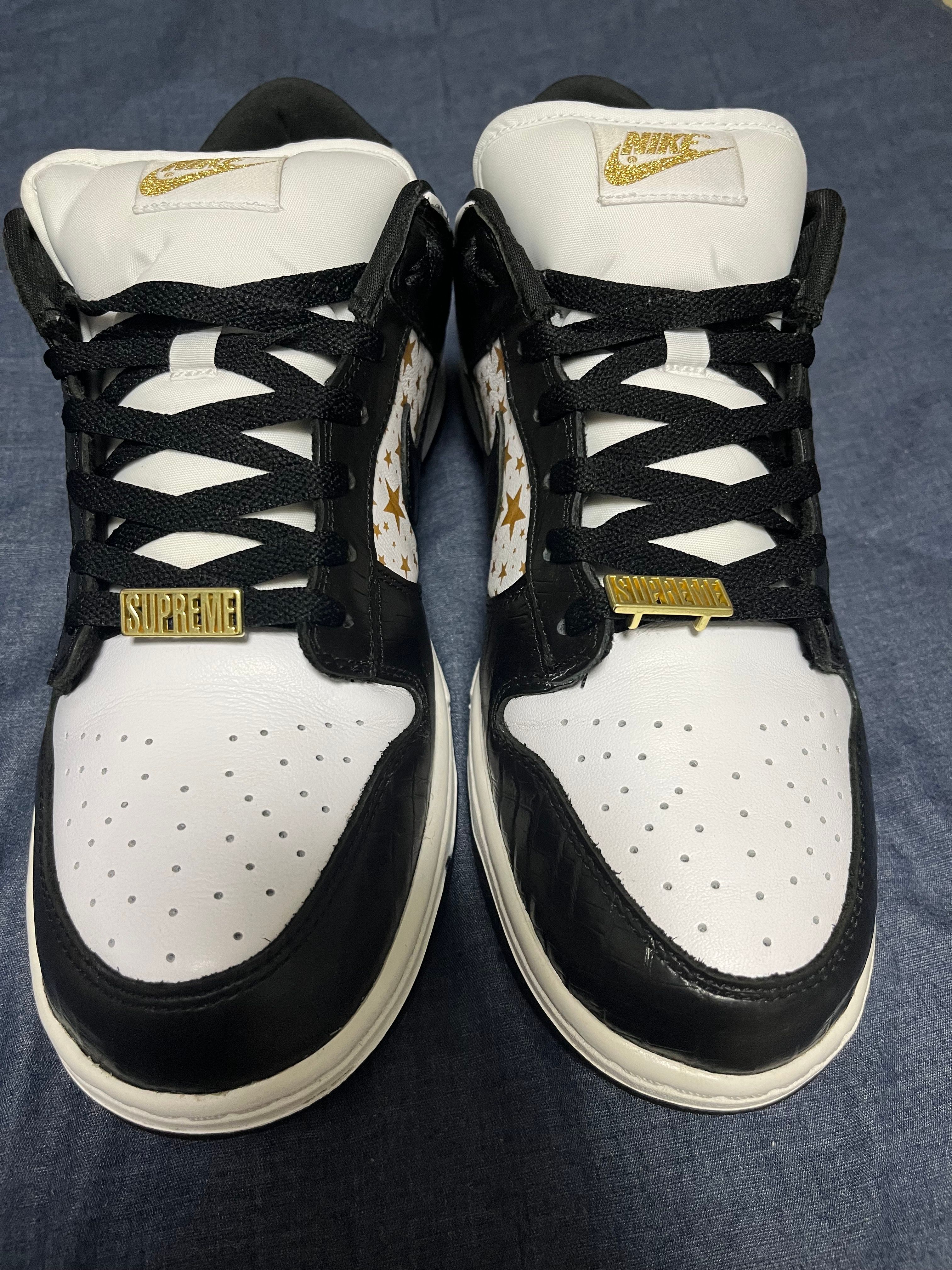 Supreme × Nike SB Dunk Low OG QS Gold Stars "White/Black"