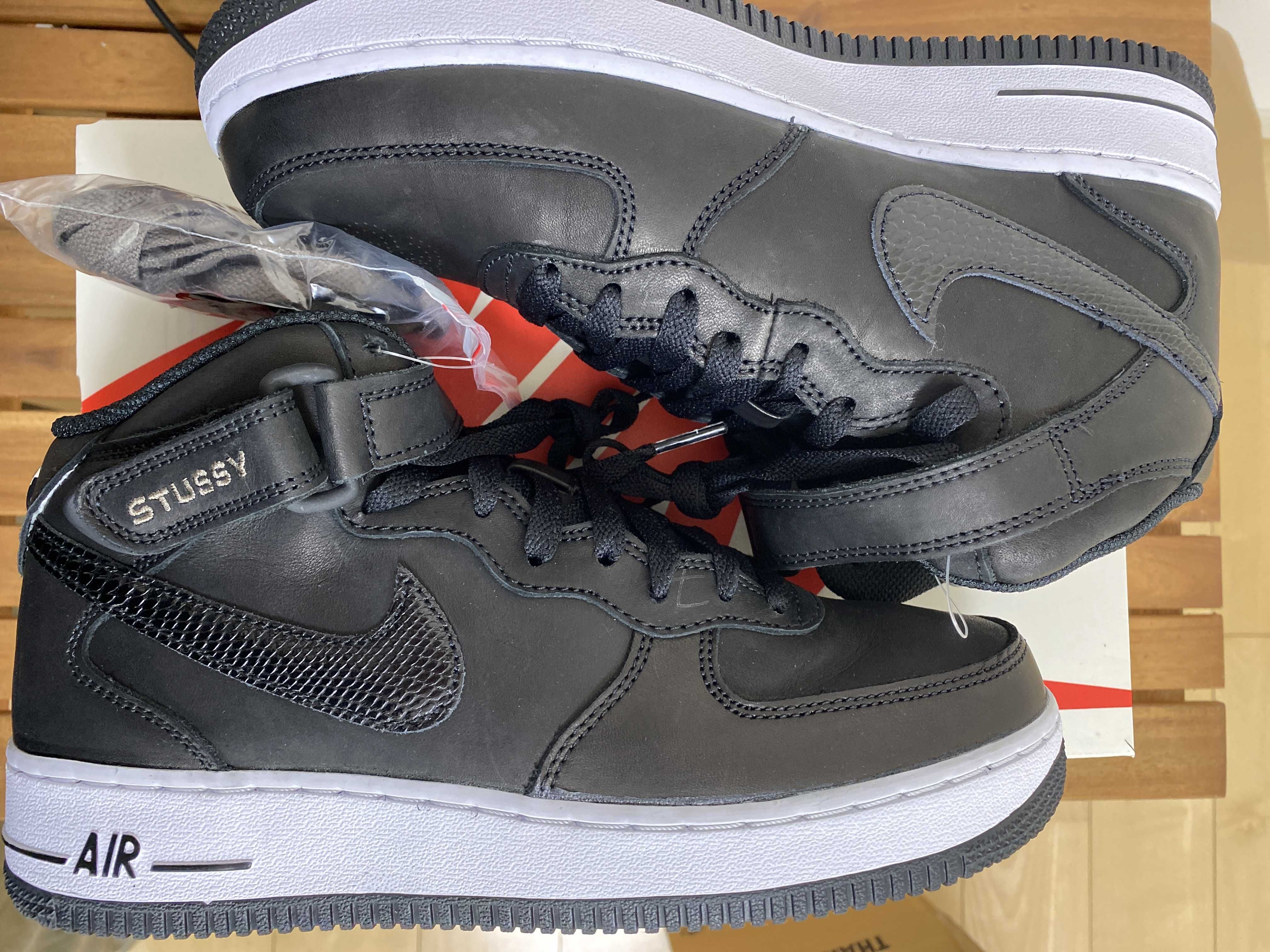 Stussy × Nike Air Force 1 Mid "Black and Light Bone"
