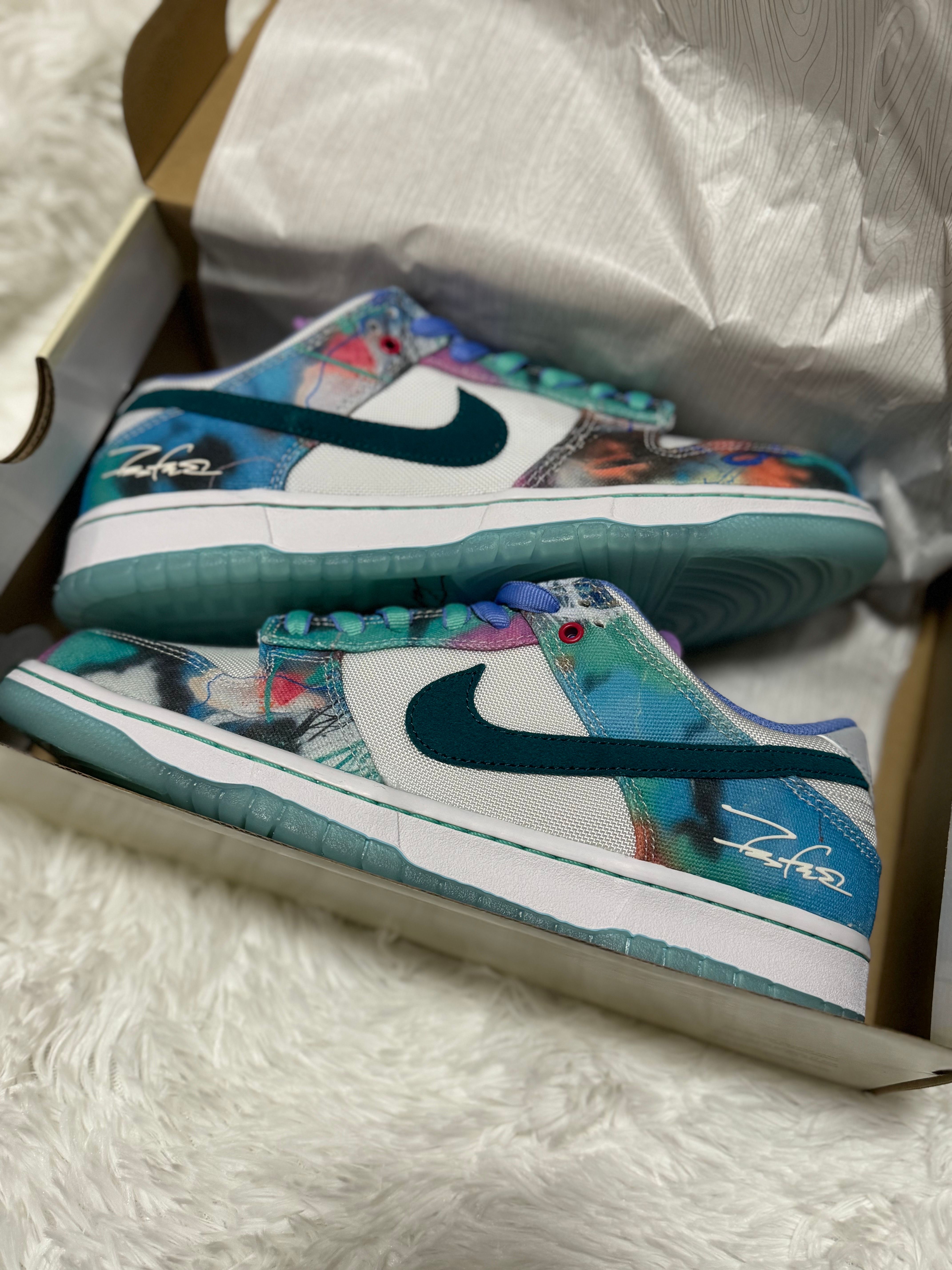 Futura × Nike SB Dunk Low "White and Geode Teal"