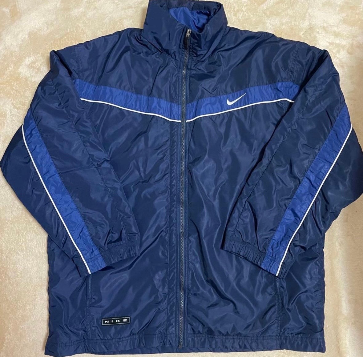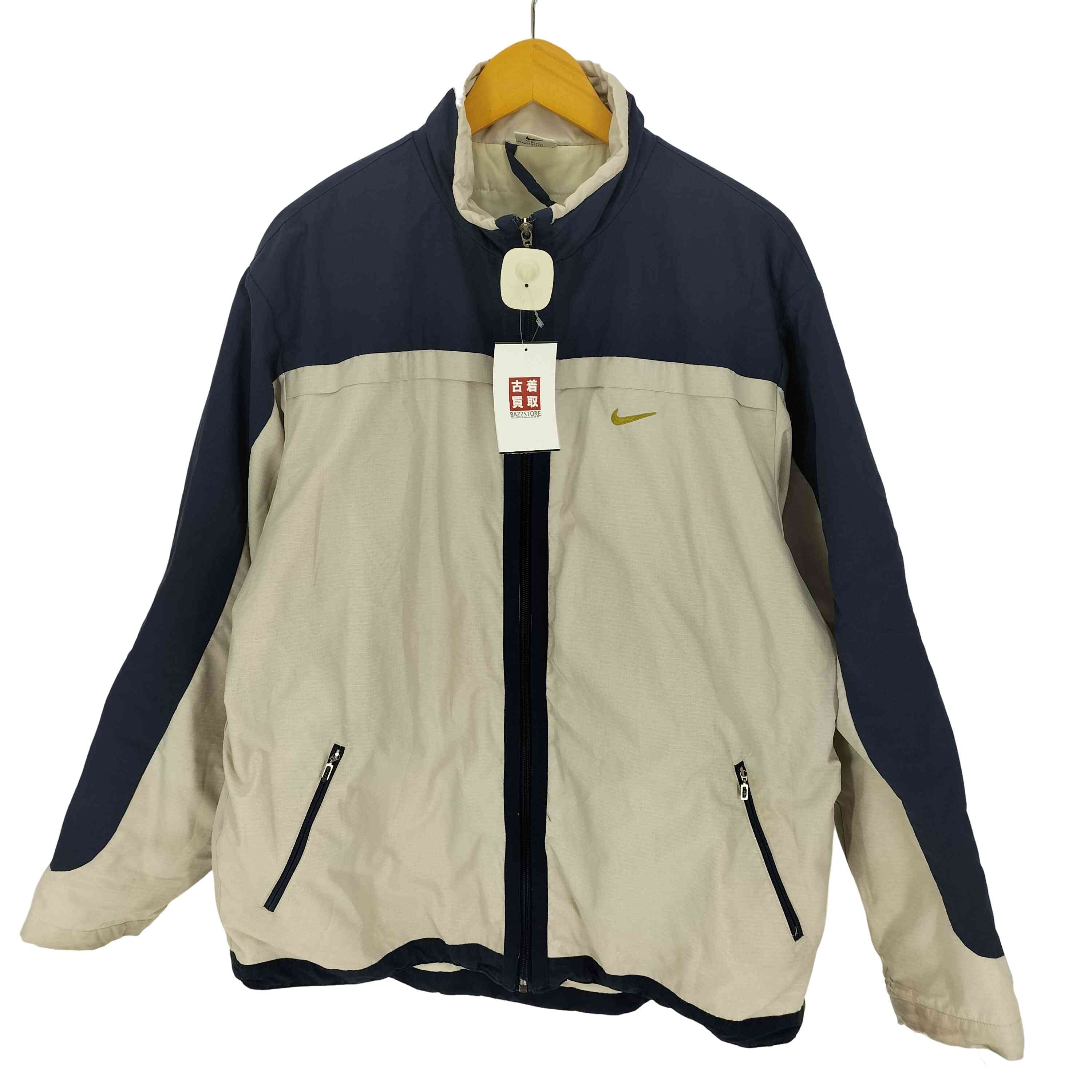 ナイキ NIKE ナイロンジャケット ブルゾン アウター スウッシュ刺繍 ネイビー Mサイズ ジャンパー 古着