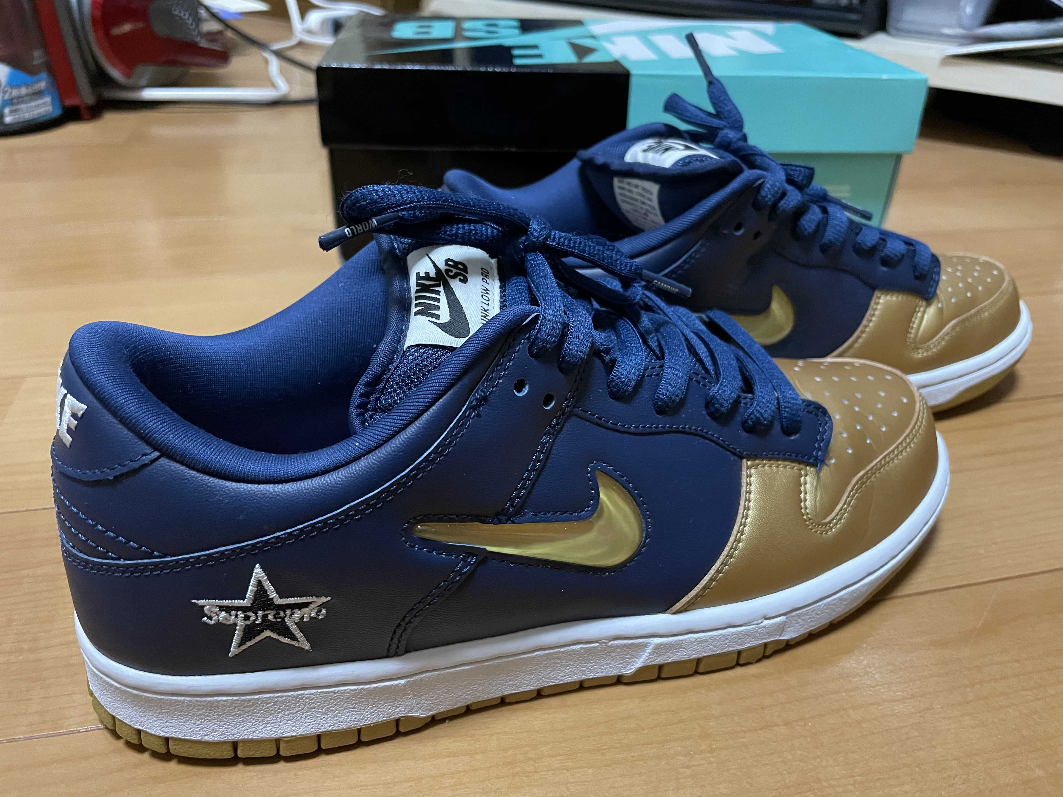 Supreme × Nike SB Dunk Low OG QS "Metallic Gold/Navy"