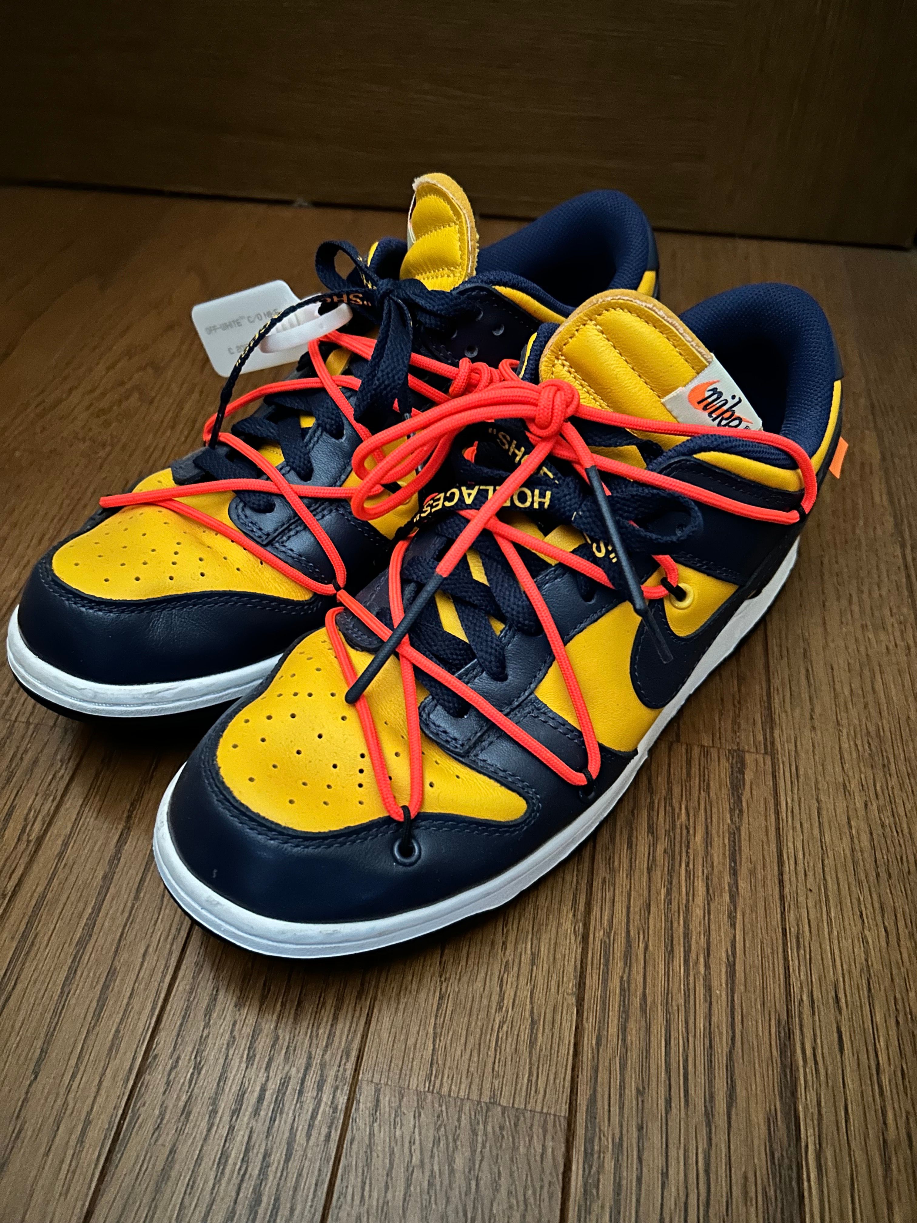 Off-White × Nike Dunk Low LTHR "University Gold/Midnight Navy/White"
