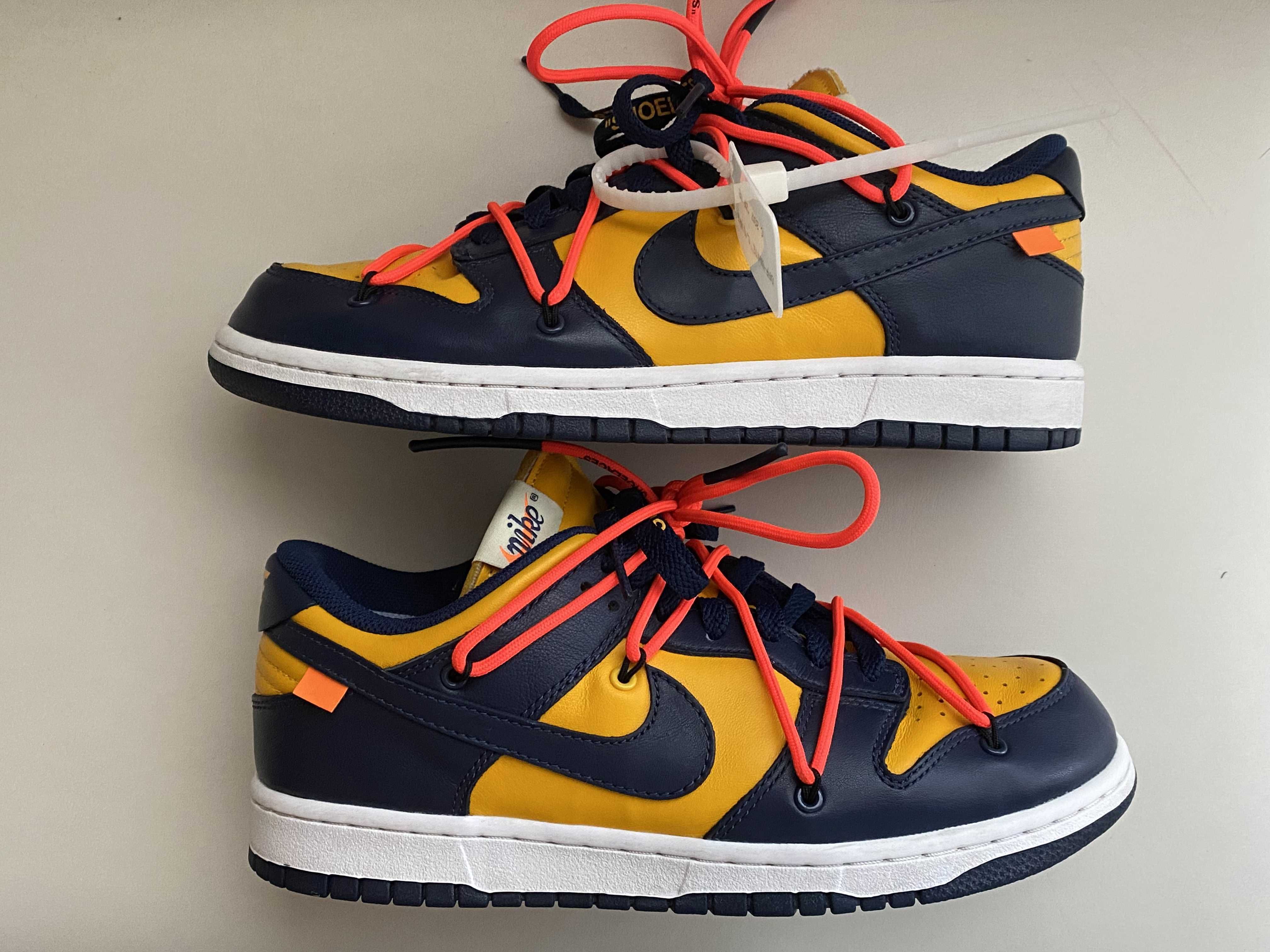 Off-White × Nike Dunk Low LTHR "University Gold/Midnight Navy/White"