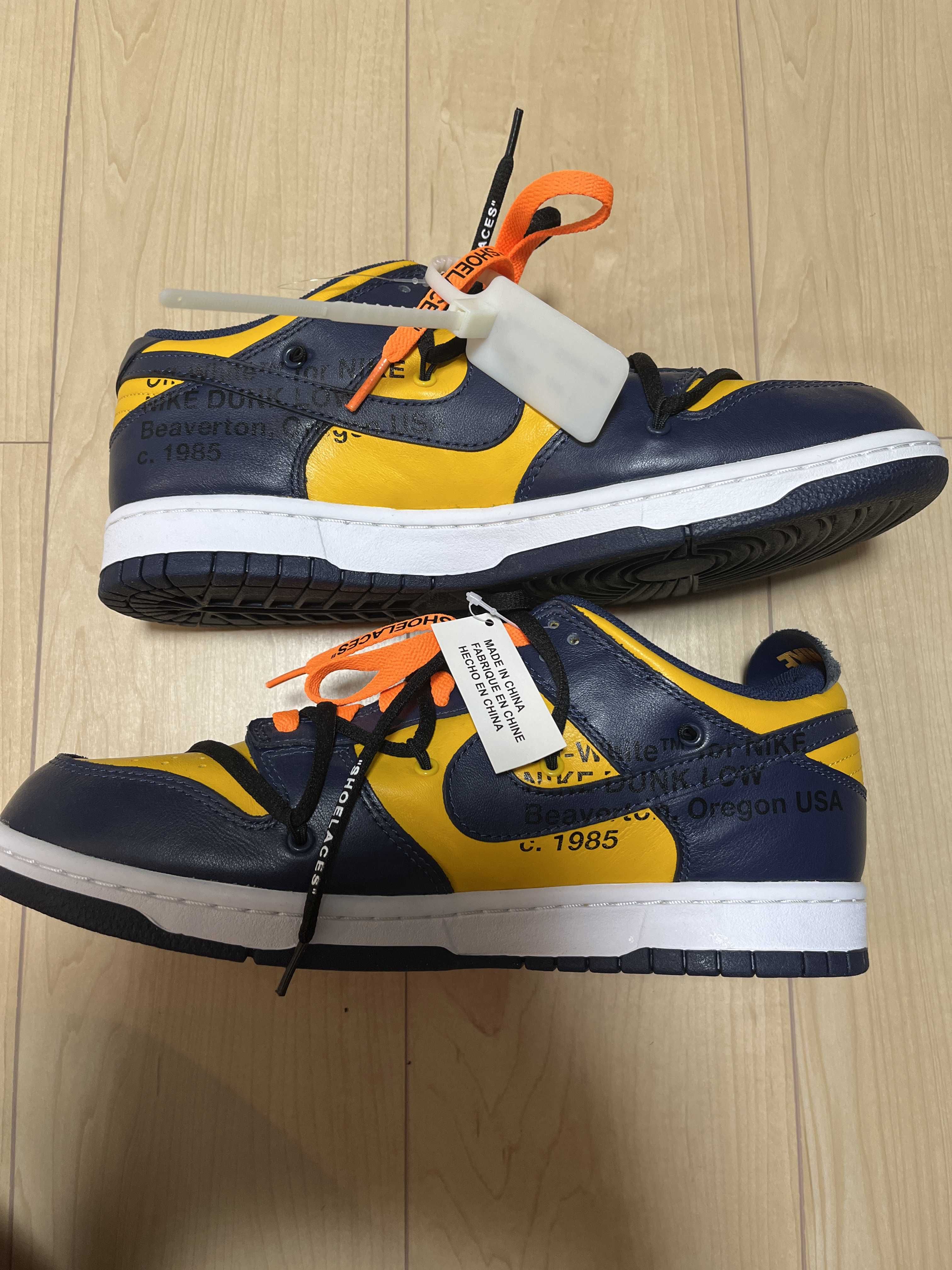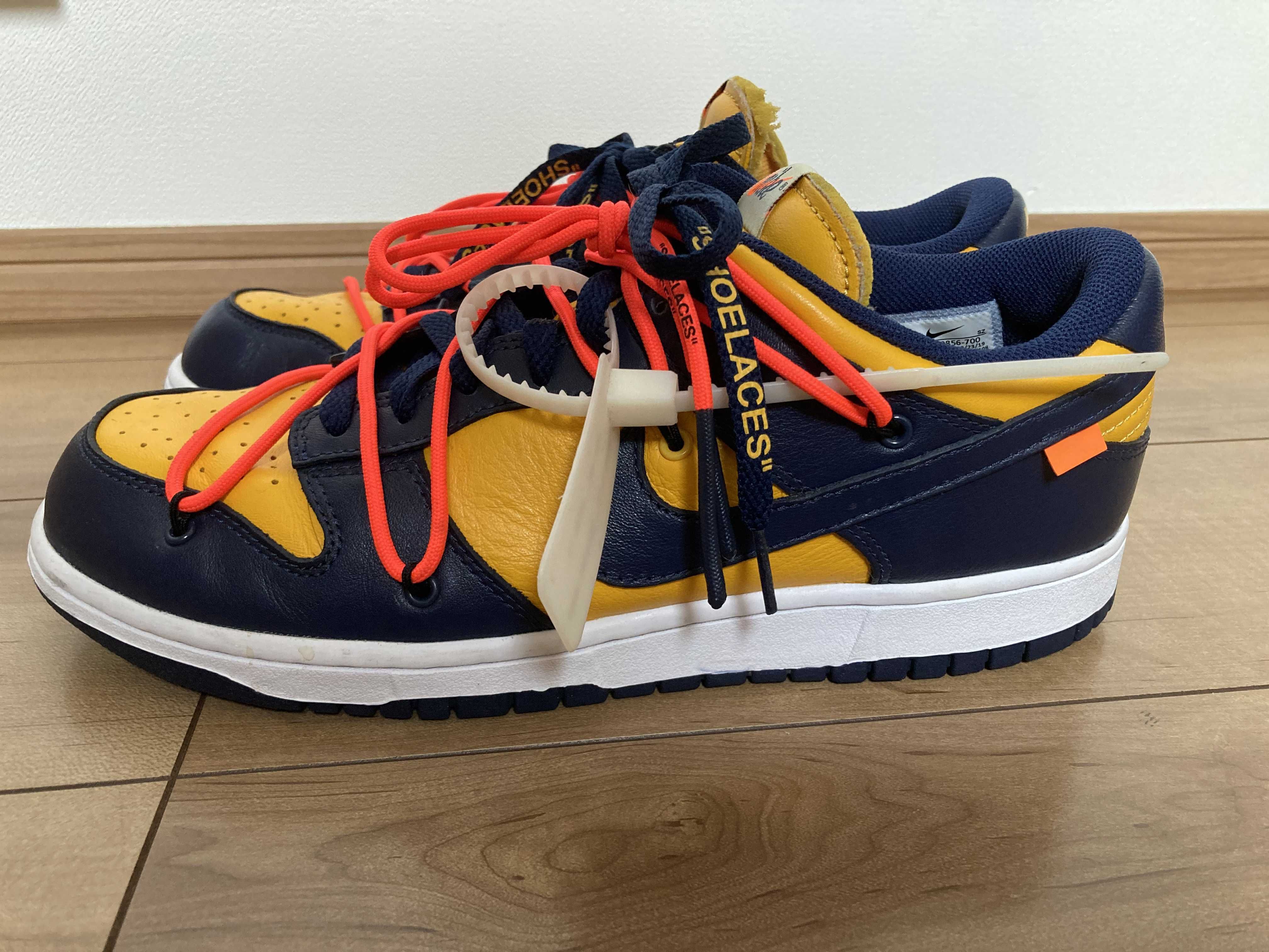 Off-White × Nike Dunk Low LTHR "University Gold/Midnight Navy/White"