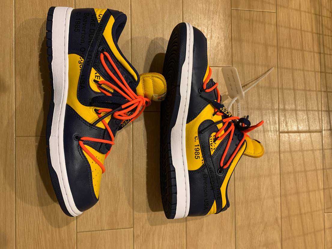Off-White × Nike Dunk Low LTHR "University Gold/Midnight Navy/White"
