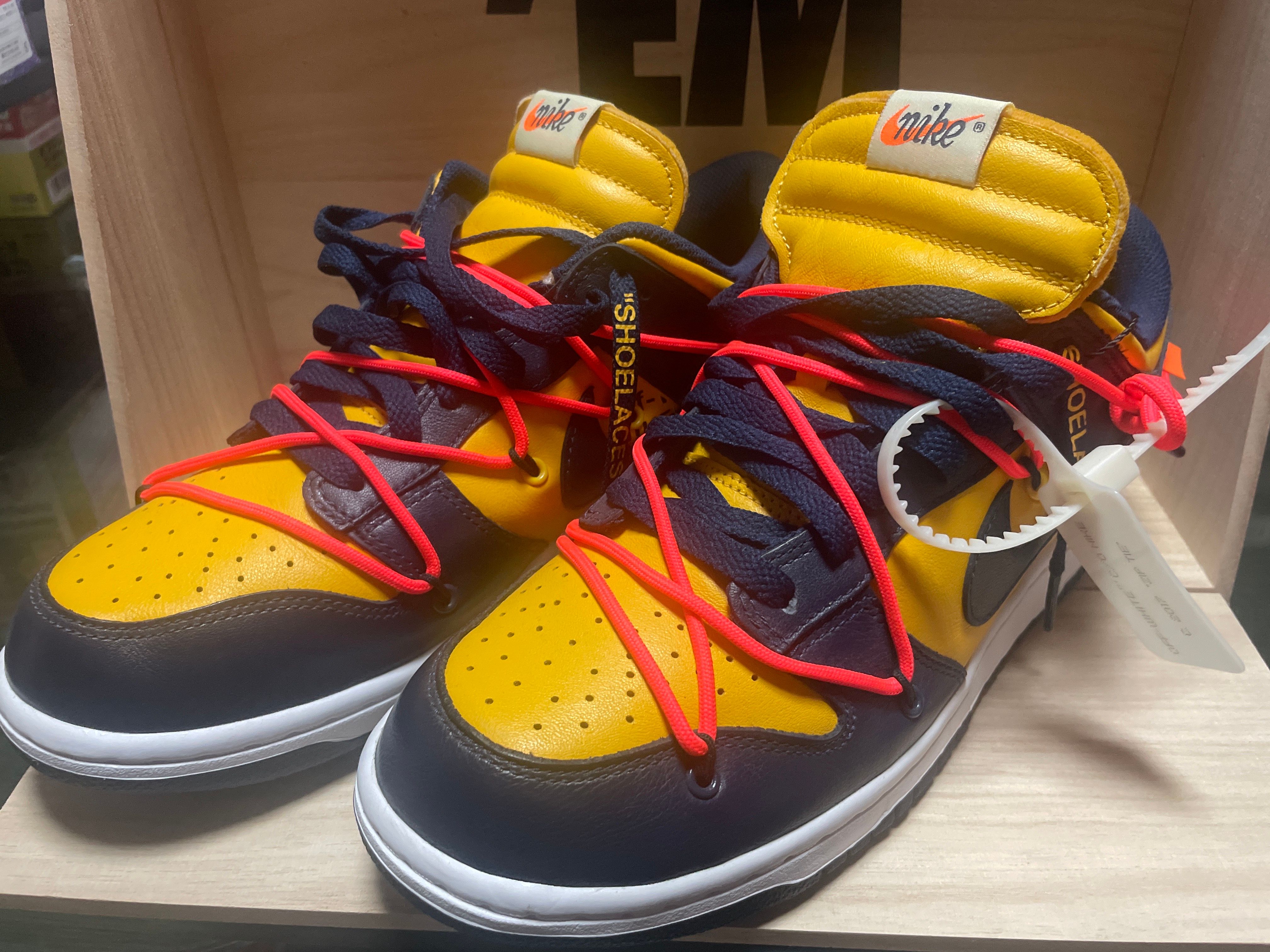 Off-White × Nike Dunk Low LTHR "University Gold/Midnight Navy/White"
