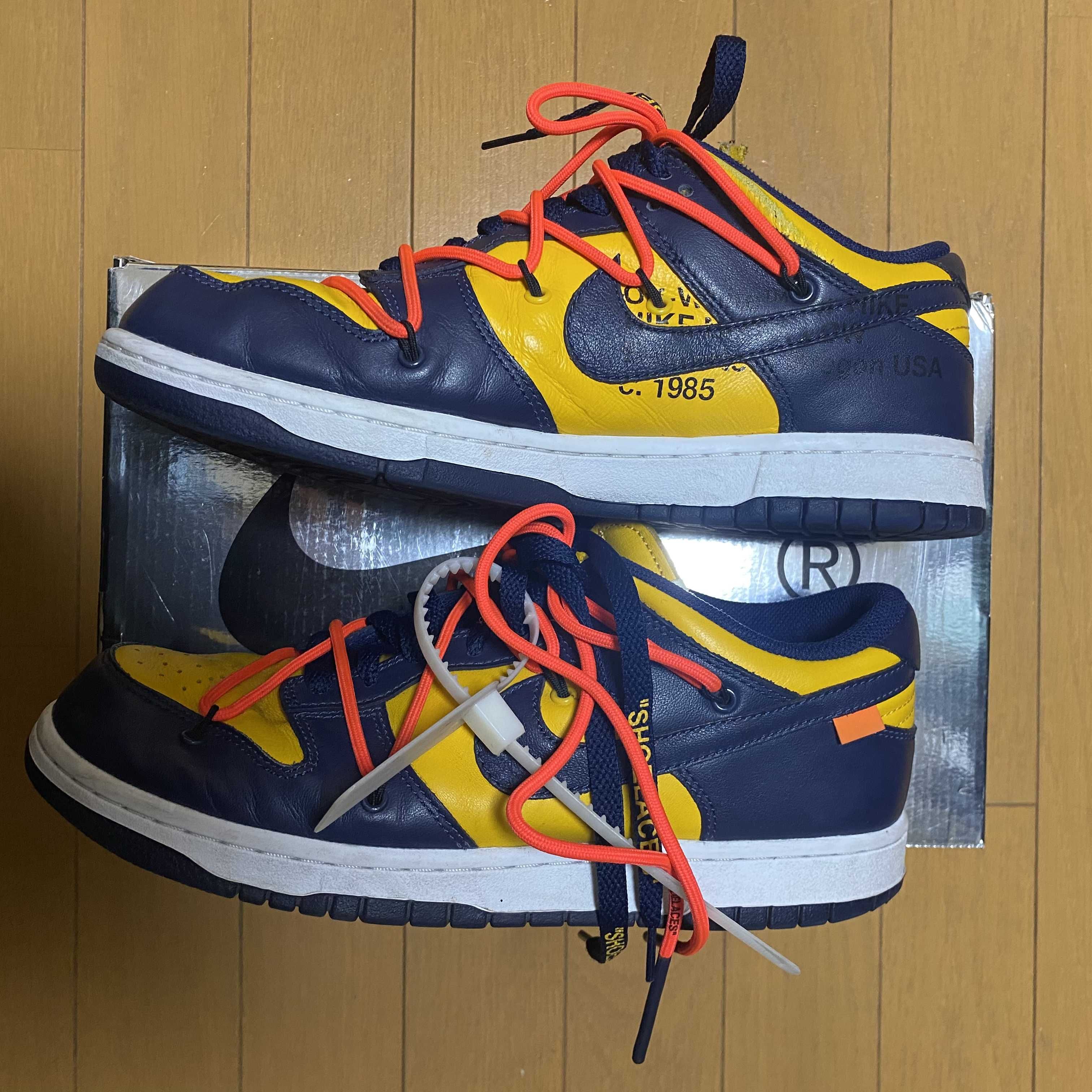 Off-White × Nike Dunk Low LTHR "University Gold/Midnight Navy/White"