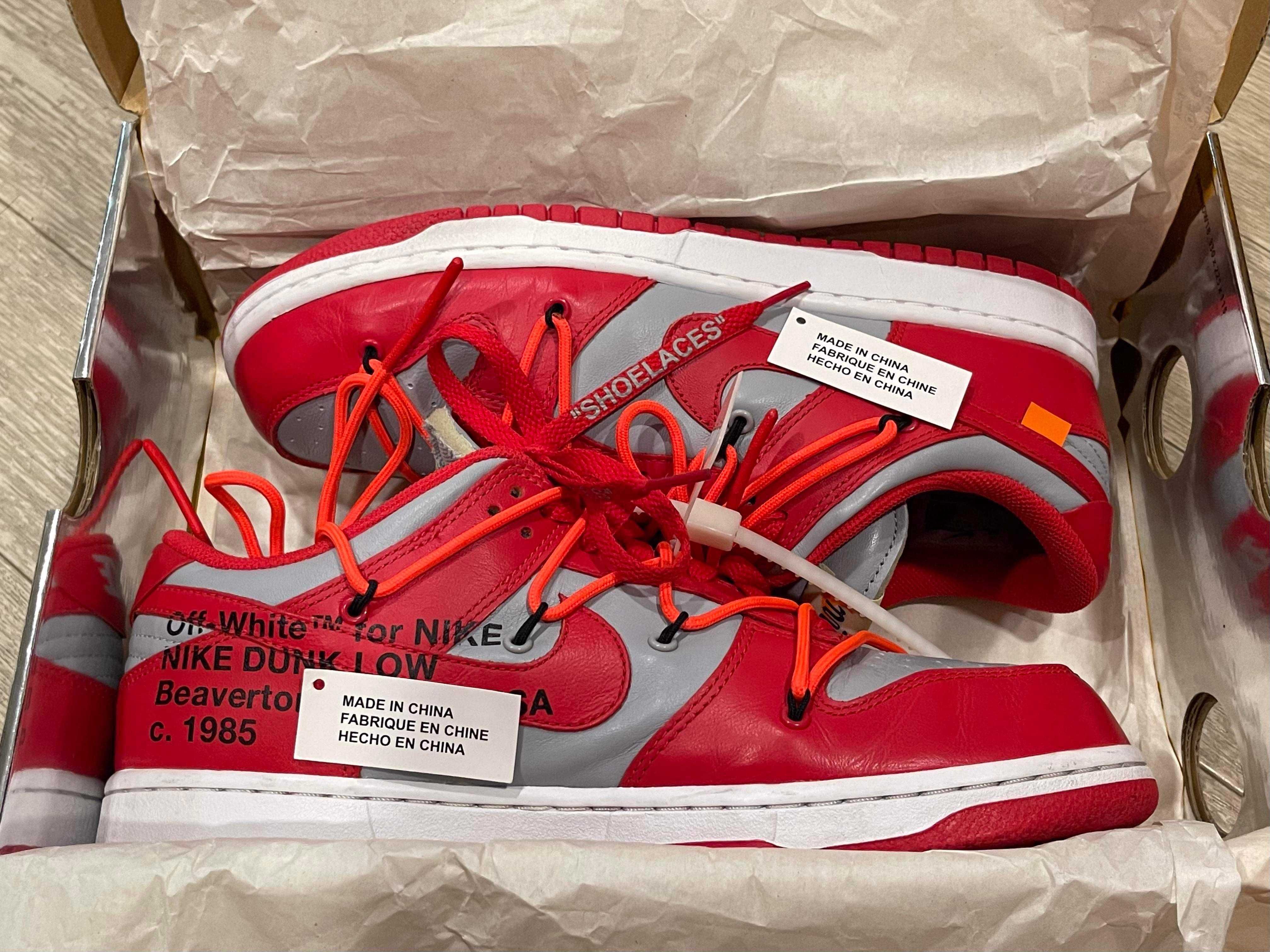 Off-White × Nike Dunk Low "University Red/Wolf Grey"