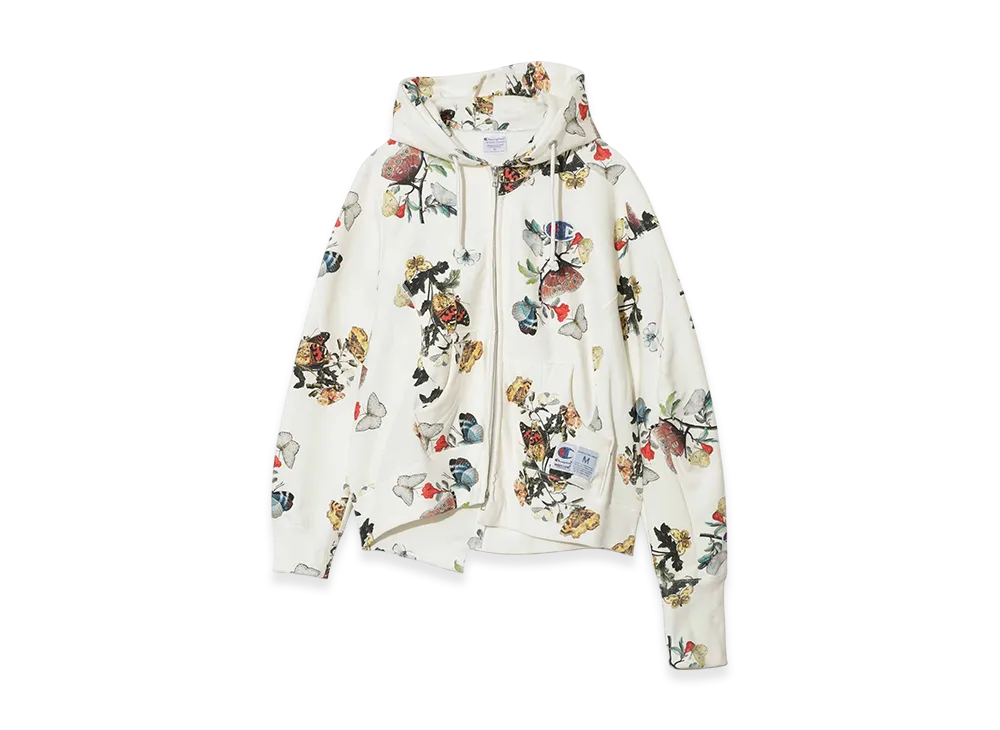 UNDERCOVER x Champion Cotton Polyester All Over Print Fleece Lined Zip Up Hoodie "Ivory Base"