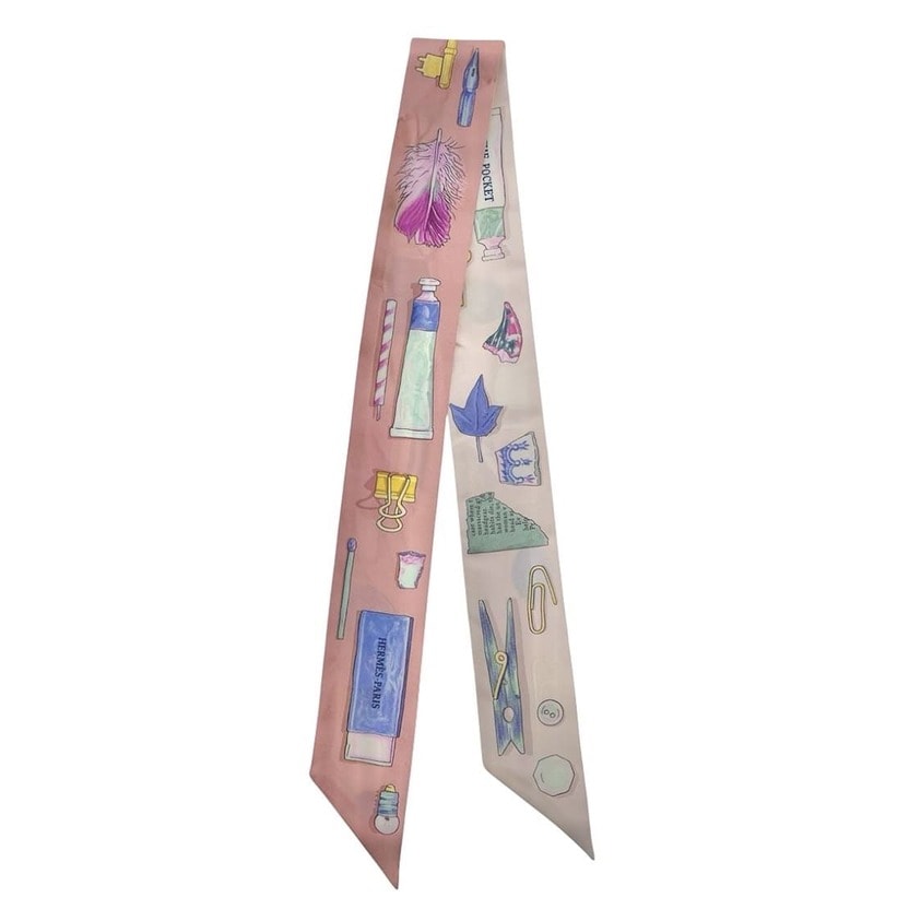 HERMES エルメス ツイリー スカーフ In the Pocket スカーフ シルク ピンク ホワイト レディース【中古】