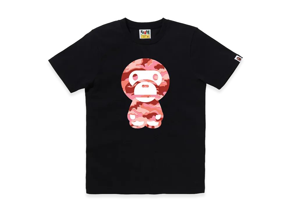 A BATHING APE Women's Glitch Woodland Camo Big Baby Miro Tee "Black/Pink"