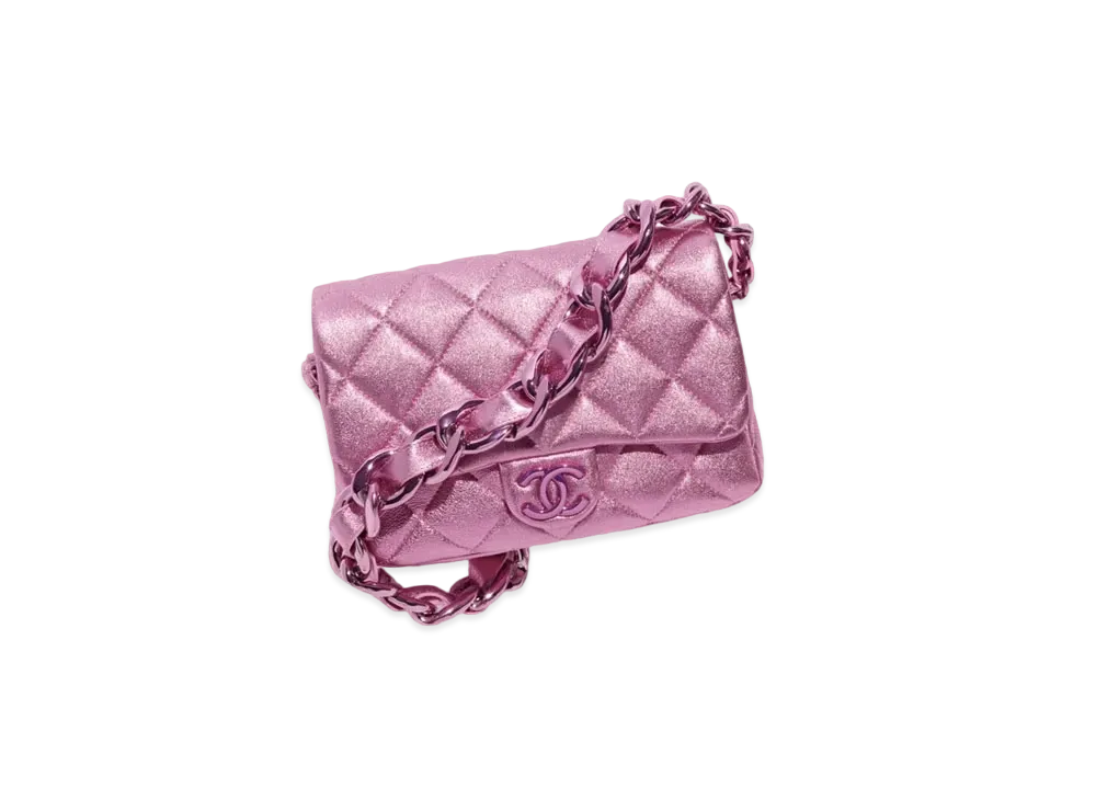 CHANEL Small Flap Bag Metallic Lambskin & Lacquered Metal "Pink"