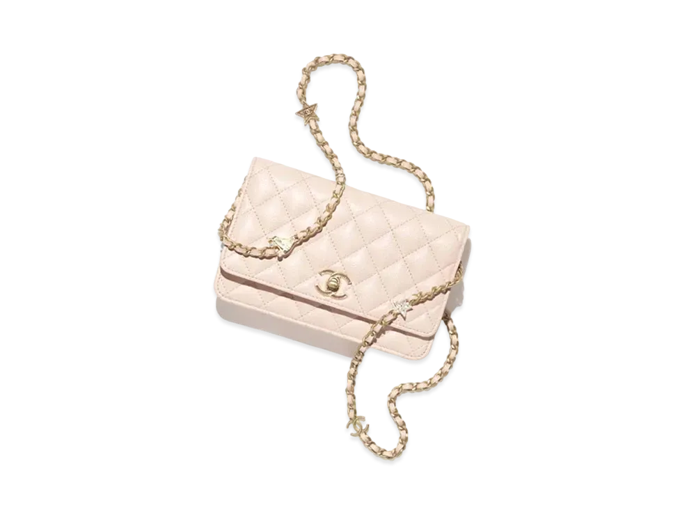 CHANEL Wallet On Chain Shiny Grained Calfskin Enamel Strass & Gold Tone Metal "Pink"