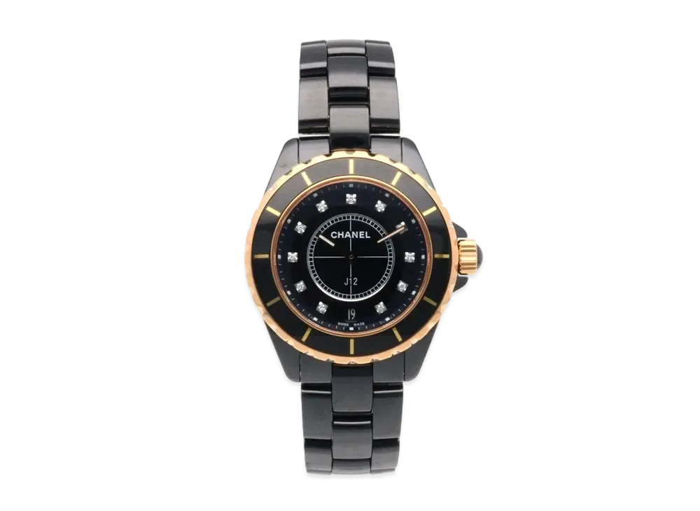 CHANEL J12 Ceramic/Pink Gold 38mm 11P Diamond "Black"