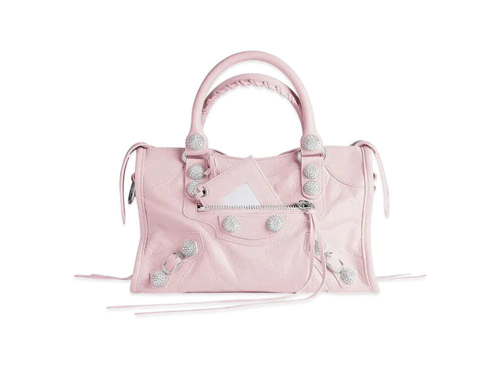 BALENCIAGA Le City Bag Small with Giant Studs and Rhinestones "Petal Pink"