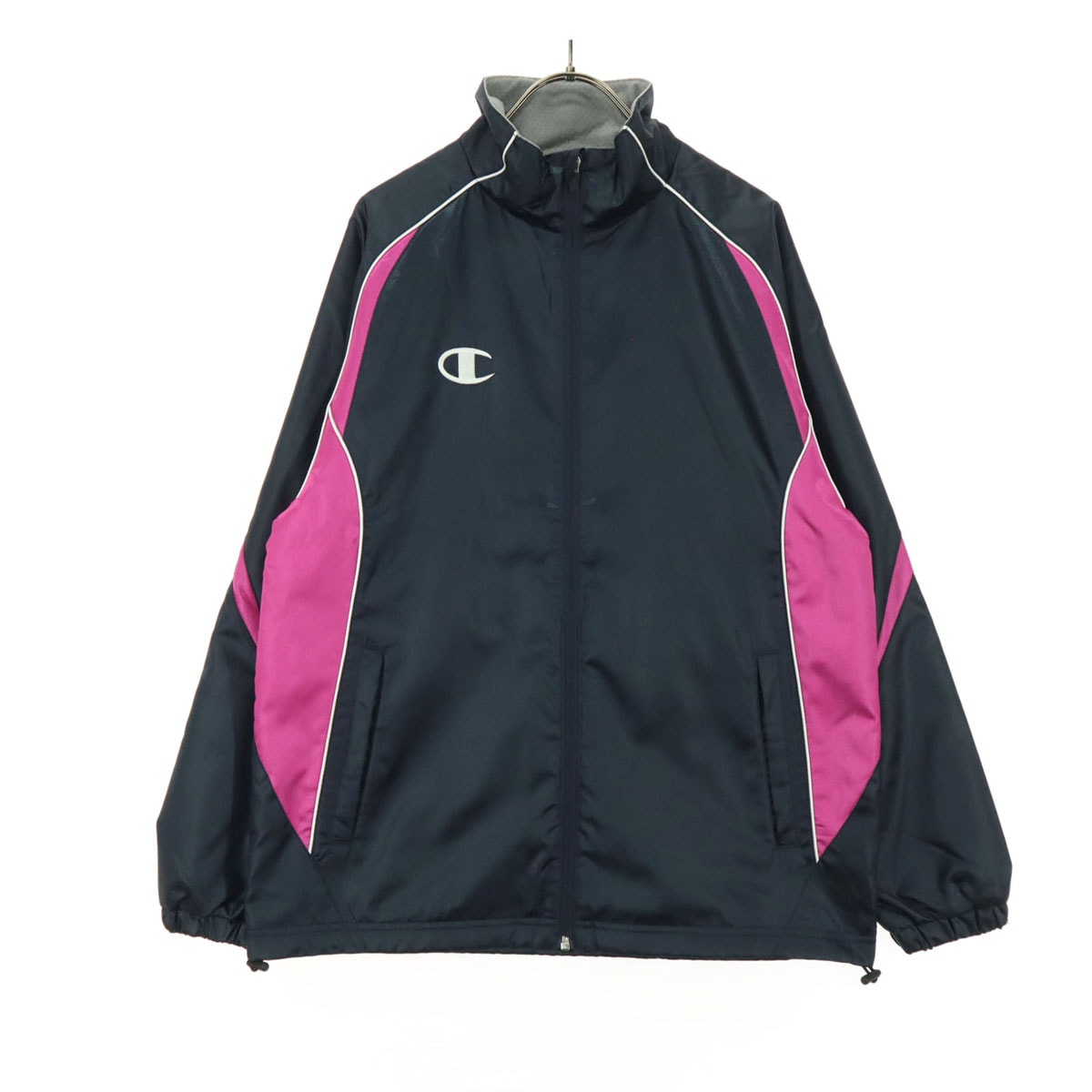 美品 Champion チャンピオン ワンポイントロゴ 長袖 ウィンドブレーカー S ブラック ピンク