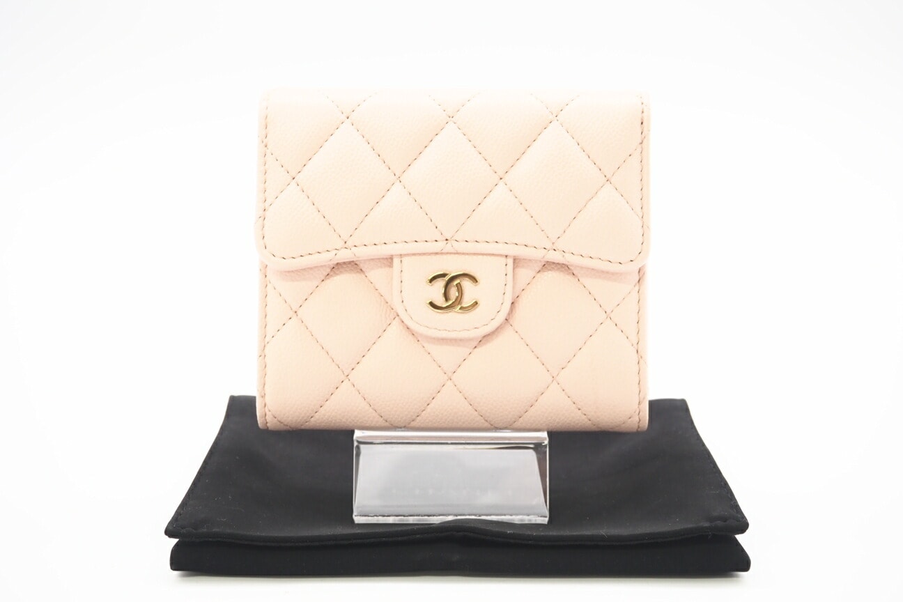 極美品 CHANEL シャネル カーフスキン マトラッセ クラシック スモール フラップ ウォレット AP0231 三つ折り財布 ピンク グレインカーフレザー レディース
