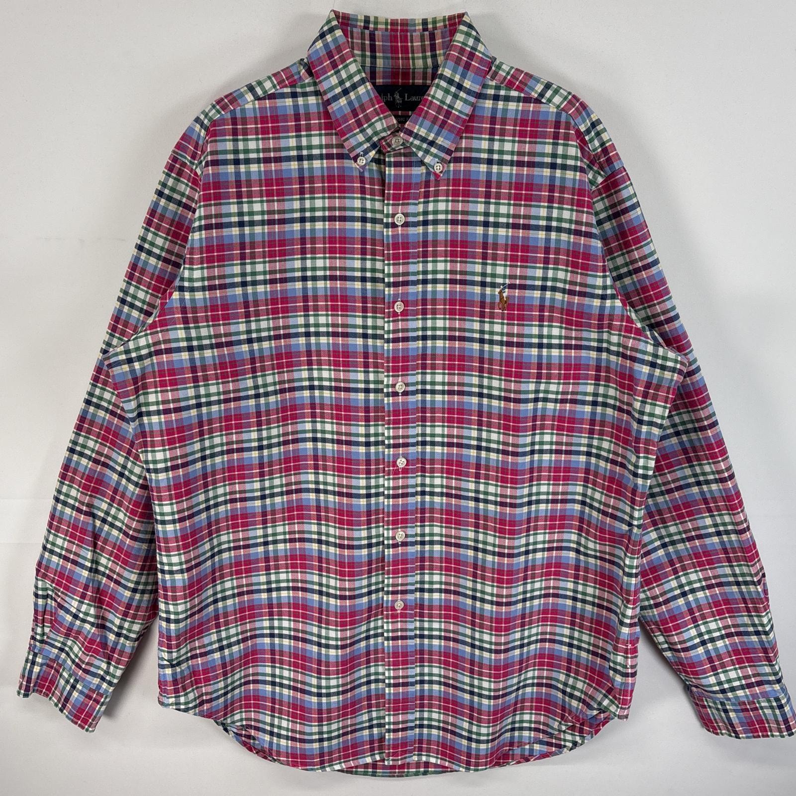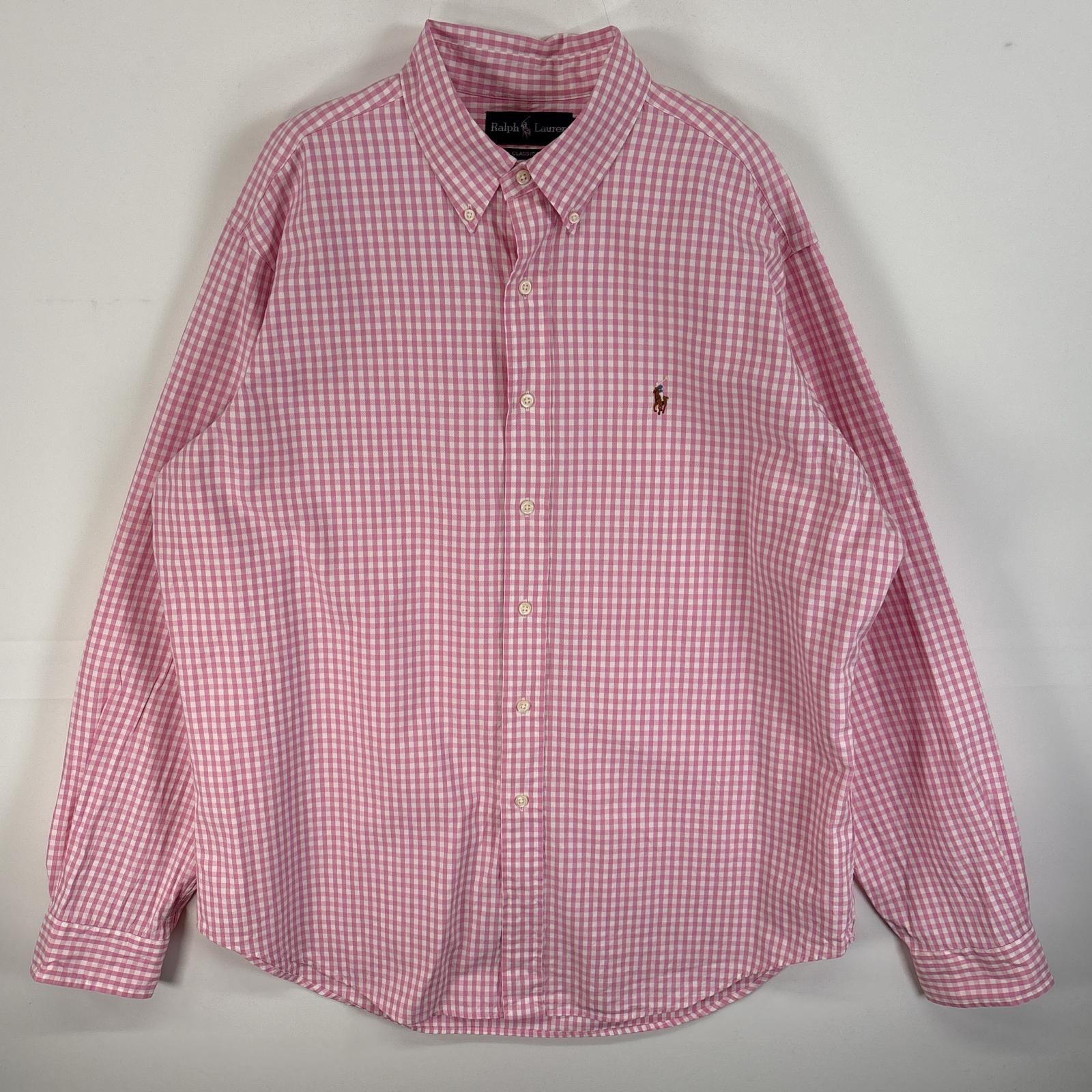 古着 ラルフローレン RALPH LAUREN 長袖シャツ ボタンダウンシャツ ワンポイント ロゴ 刺繍 大きいサイズ 1XB ピンク 無地 メンズ