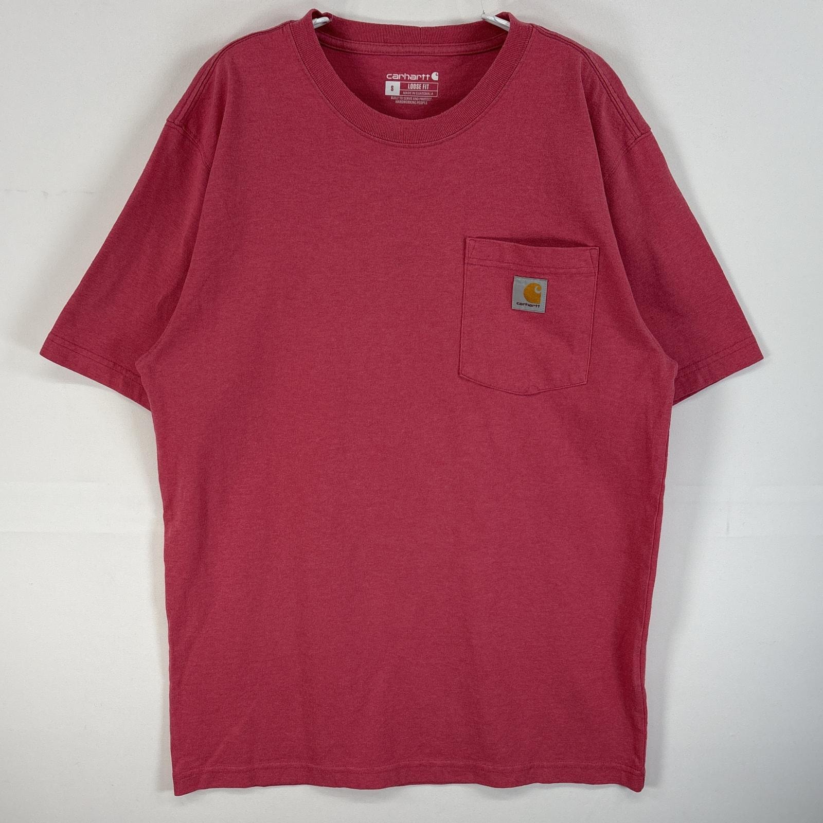 古着 カーハート Carhartt 半袖Tシャツ ワンポイント ロゴ 胸ポケ クルーネック S ピンク 無地 メンズ