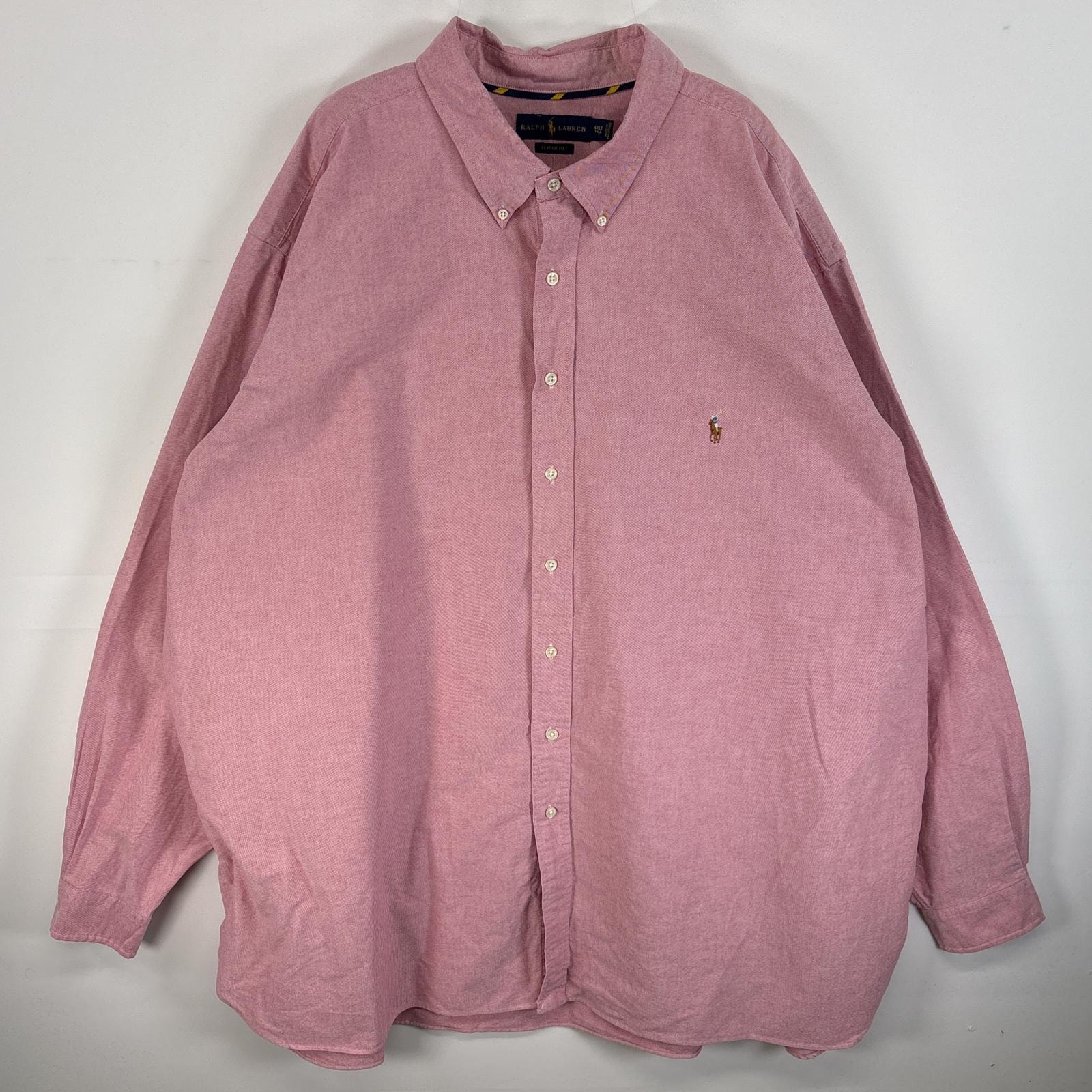 古着 ラルフローレン RALPH LAUREN 長袖シャツ ボタンダウンシャツ ロゴ 刺繍 オックスフォードシャツ 4XLT ピンク 無地 メンズ