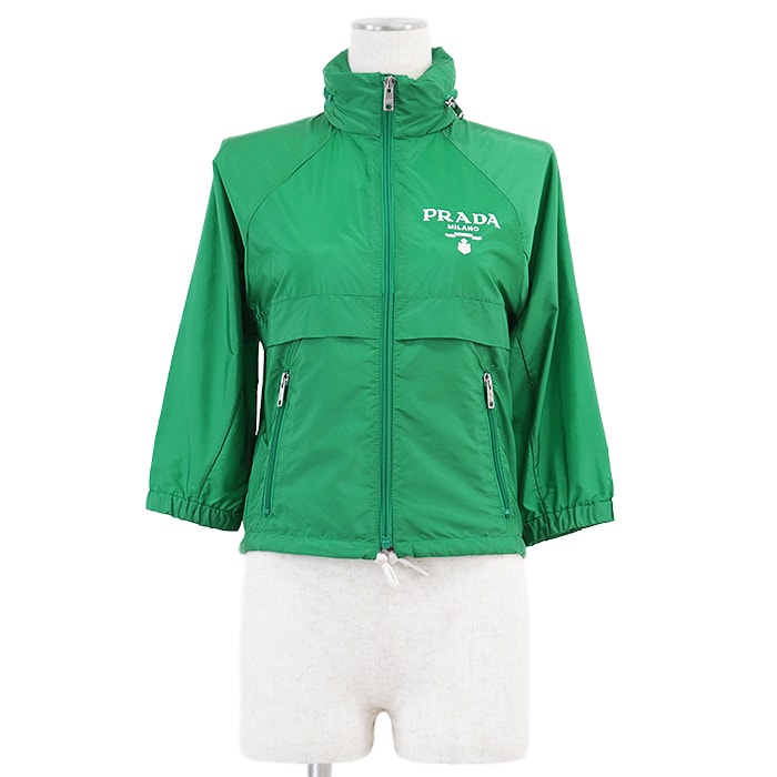 プラダ 2021年製 RENYLON ナイロン ハーフスリーブ ブルゾン レディース グリーン 38 PRADA