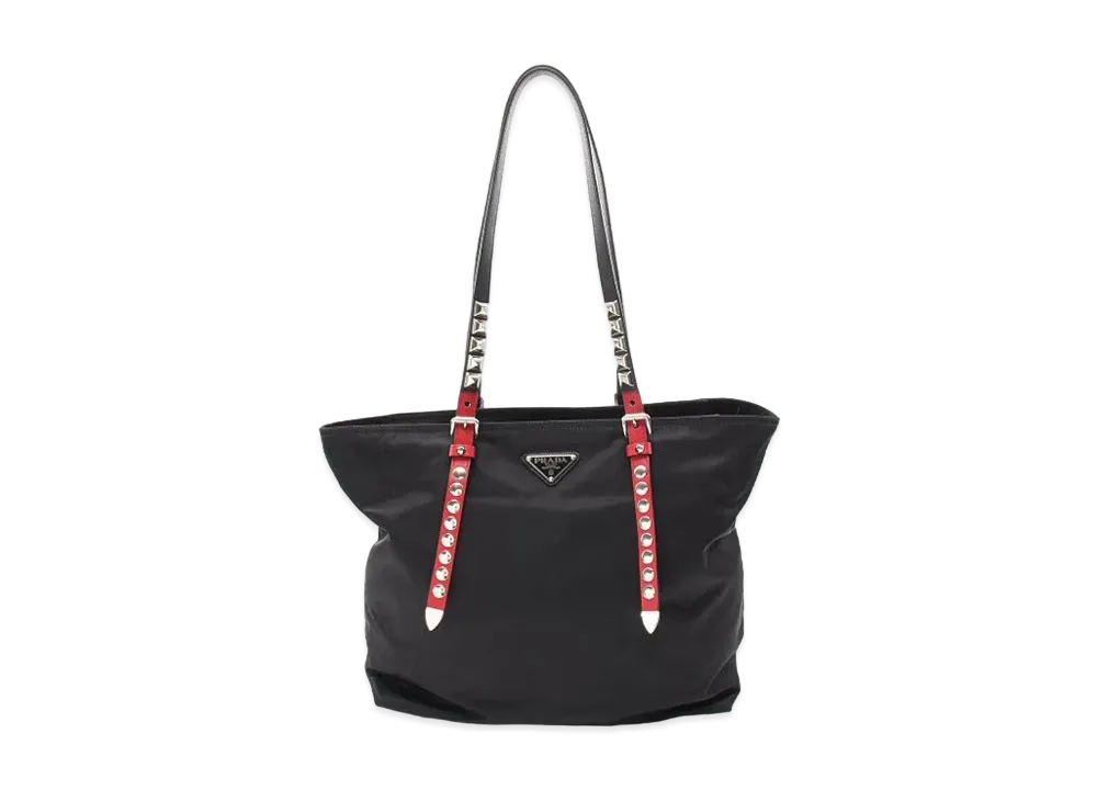 PRADA New Vela Studs Nylon Tote Bag "Black"