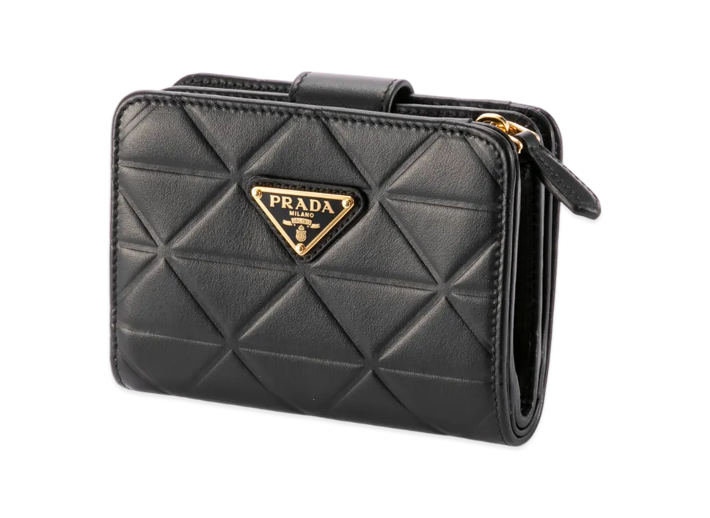 PRADA Softalf Triangoli Small LShaped Wallet "Black"