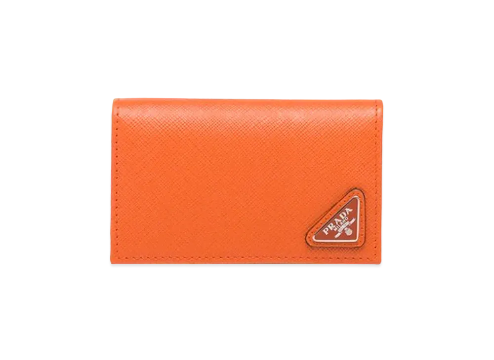 PRADA Saffiano Triangle Card Case "Orange"