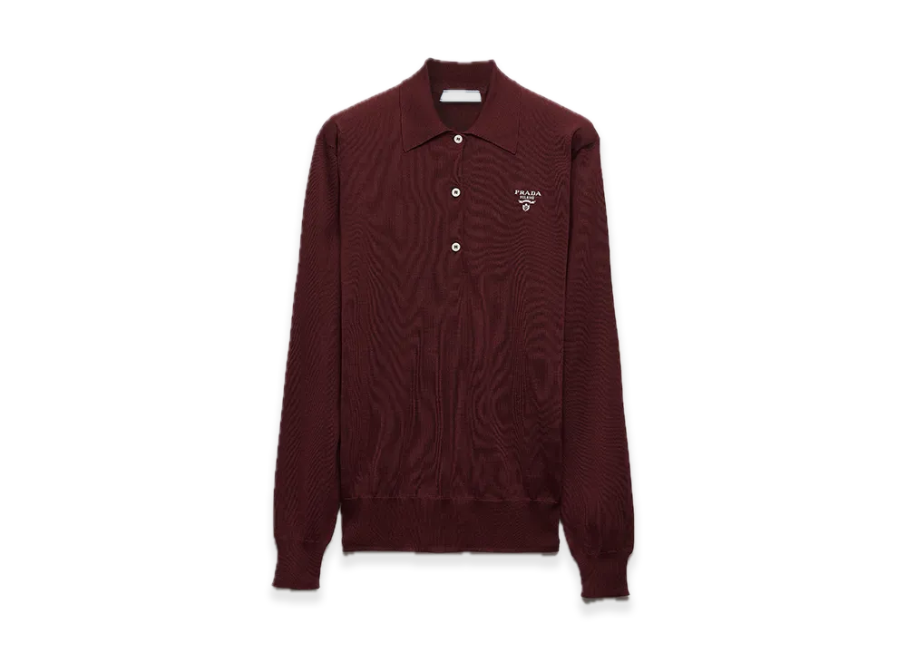 PRADA Long-Sleeve Silk Polo Shirt "Wine red"