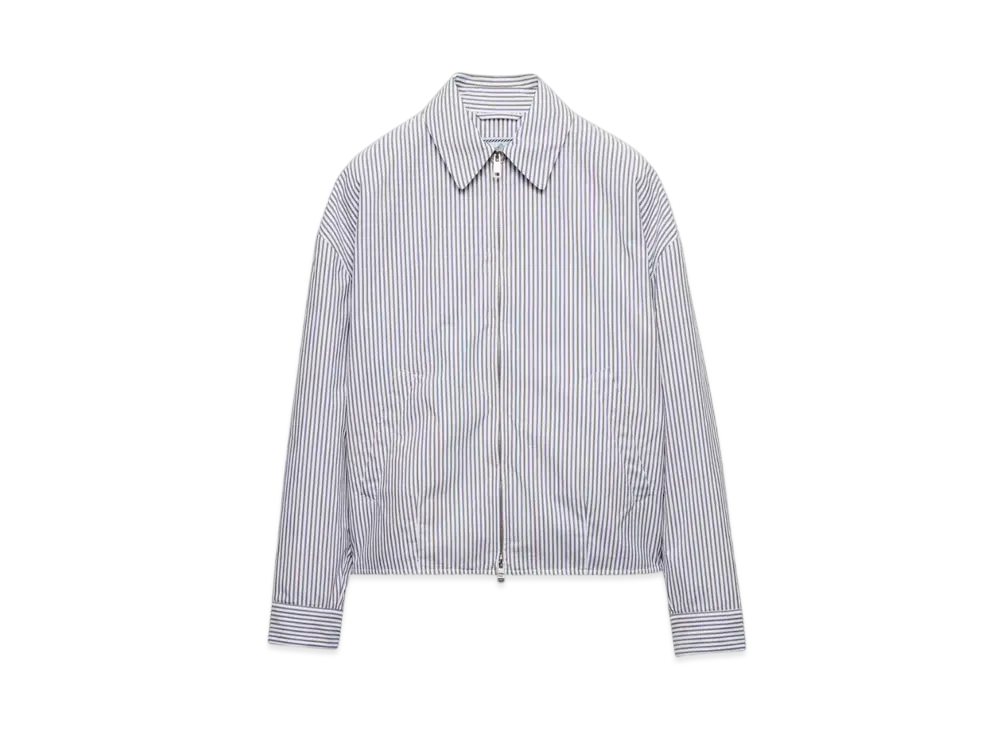 PRADA Women's Striped Poplin Blouson Jacket "White/Navy"