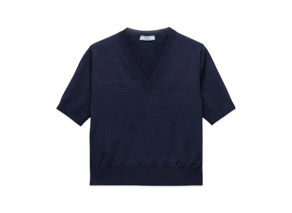 PRADA Women's V-Neck Wool Sweater "Navy"