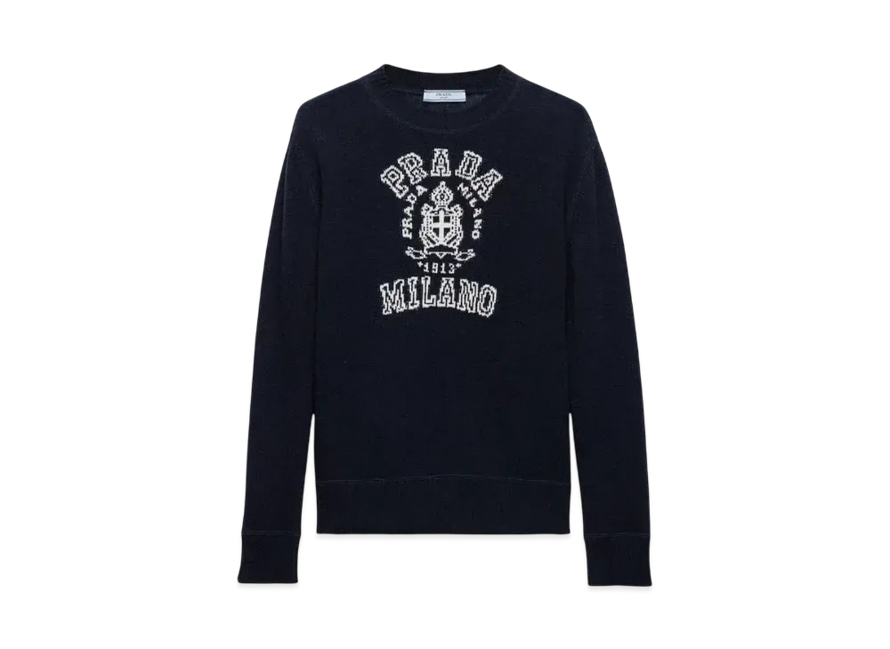 PRADA Women's Wool and Cashmere Intarsia Sweater "Navy/White"