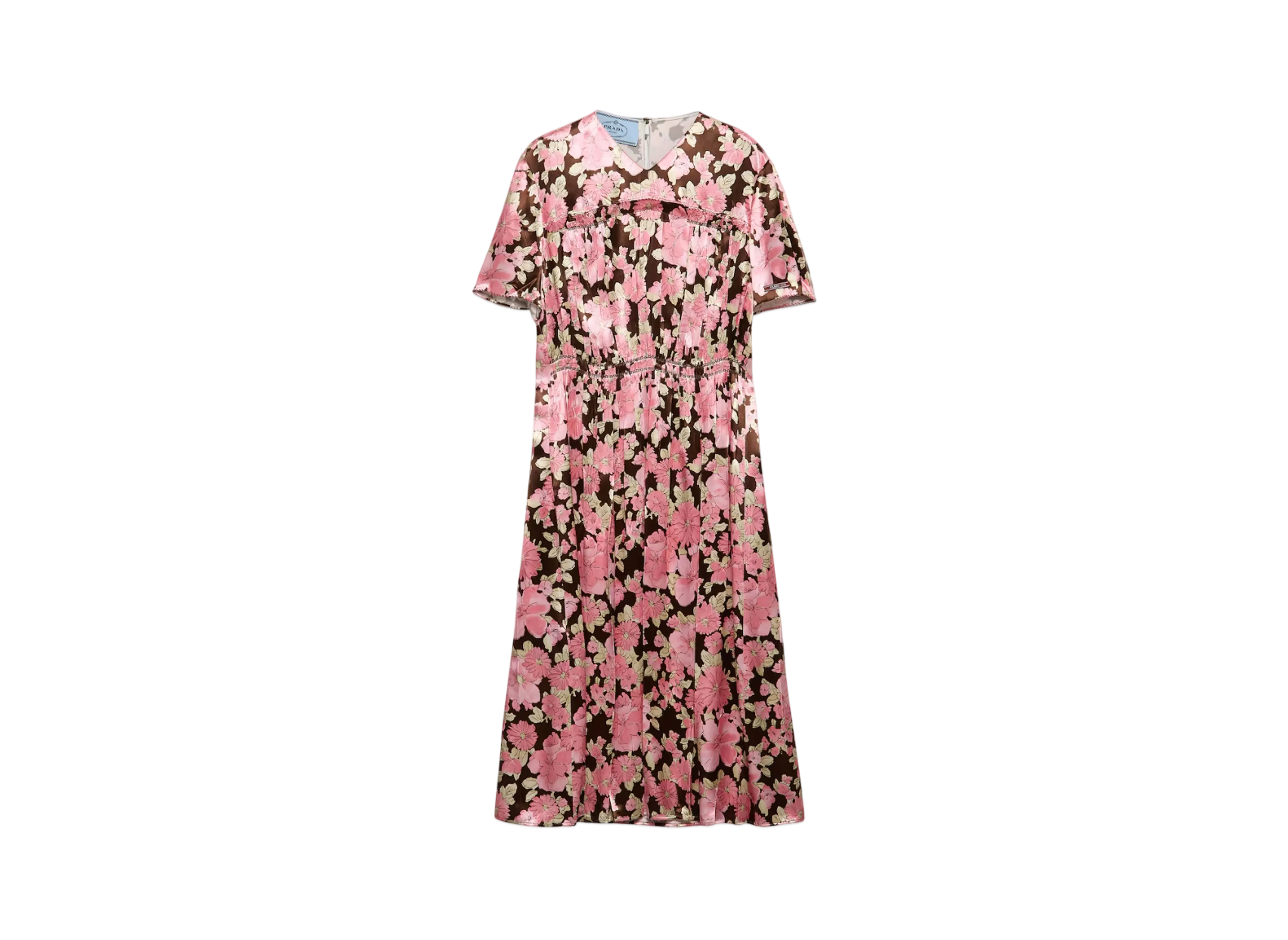 PRADA Women's Embroidered Satin Midi-Dress "Dark Brown"