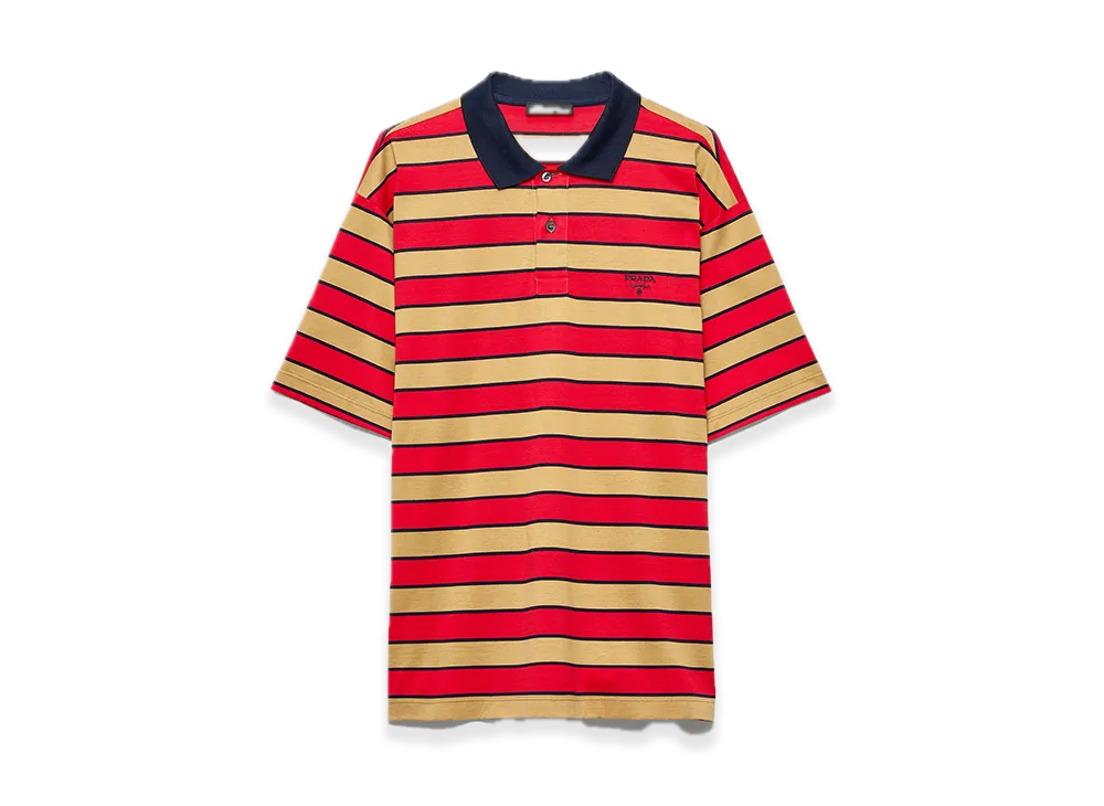 PRADA Cotton Polo Shirt "Camel/Red"