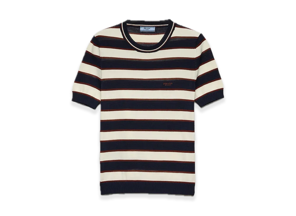 PRADA Stripe Cotton Crewneck Sweater "Navy/Beige"
