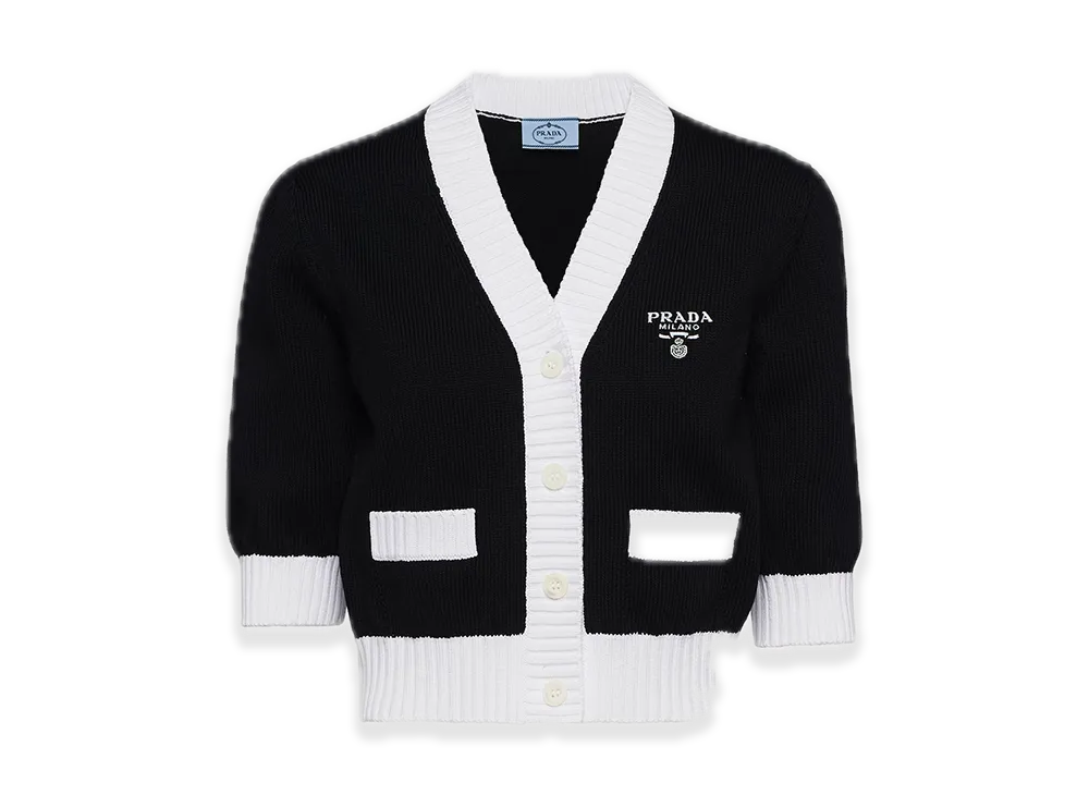 PRADA Cropped Cotton Cardigan "Black/White"