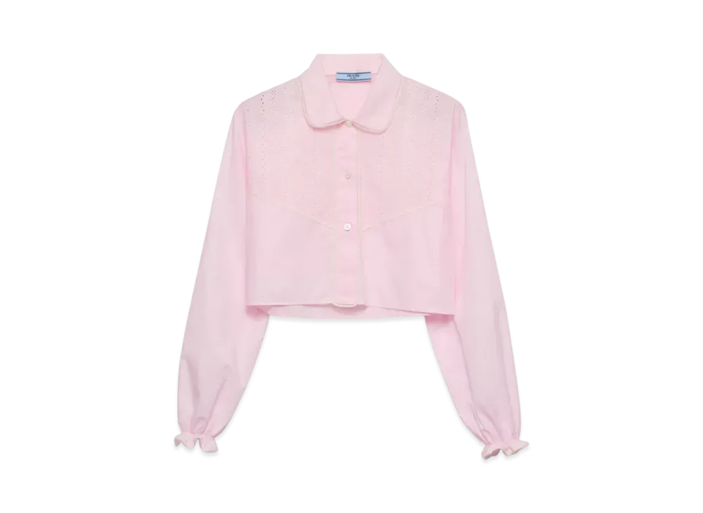 PRADA Women's Embroidered Cropped Batiste Shirt "Pink"