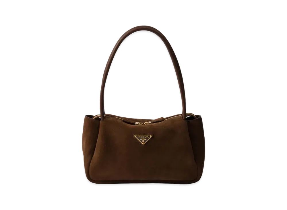 PRADA Medium Suede Shoulder Bag "Dark Brown"